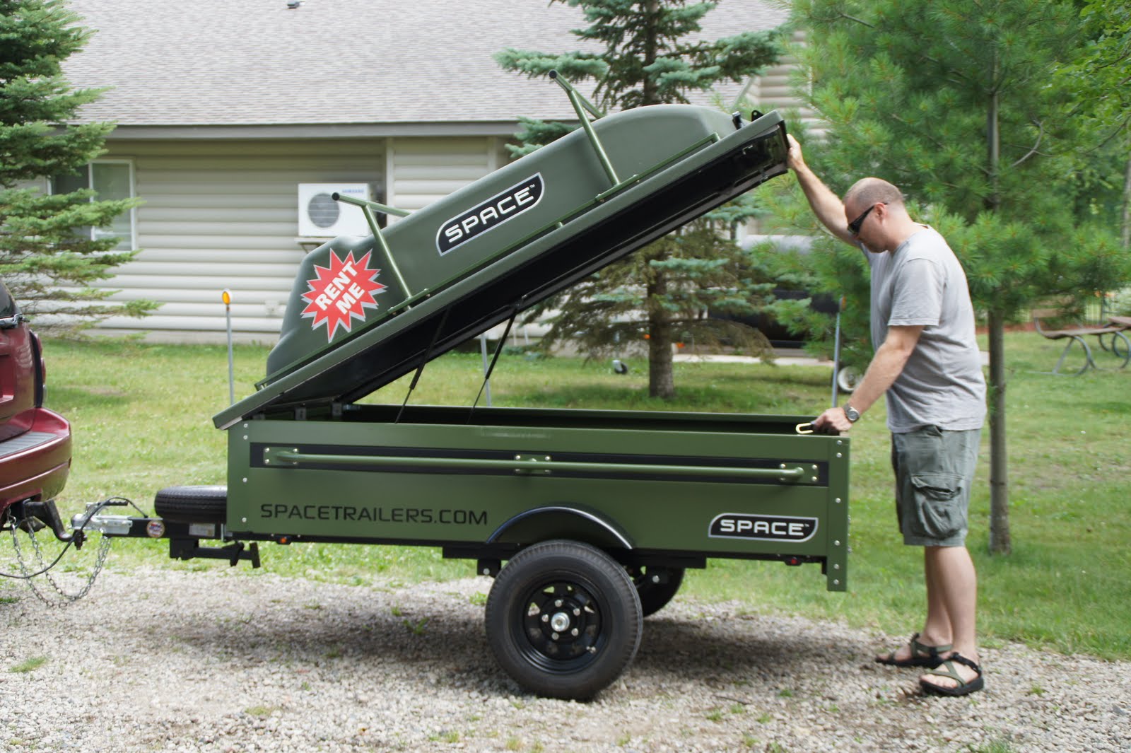 This lightweight covered cargo trailer was perfect. It was easy to hook up and was a breeze to tow behind our car. Most importantly, it was covered. This trailer was the perfect size for my family of 7's gear. We had so many compliments and inquiries about this trailer and I couldn't give it high enough praise. Even when we stopped at a store, I noticed a guy circling the trailer in interest. All in all, this trailer is good-looking, sturdy and highly functional. So whether you are buying or renting, these trailers are reasonably priced and have many options like the basic uncovered, adjustable SPACE bars for hauling canoes, bikes or kayaks, and spare tires. If you're taking a trip and need extra storage, check out SPACE trailers, you will not be disappointed.